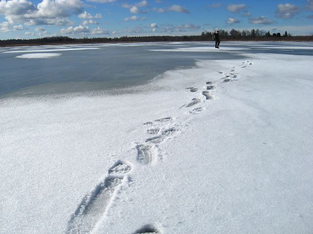 Kevadine retk Kaiu järve kandis. Roostikud ja kaldad kandsid veel hästi. Ristimurru kraavgi oli veel jääd mööda ületatav.